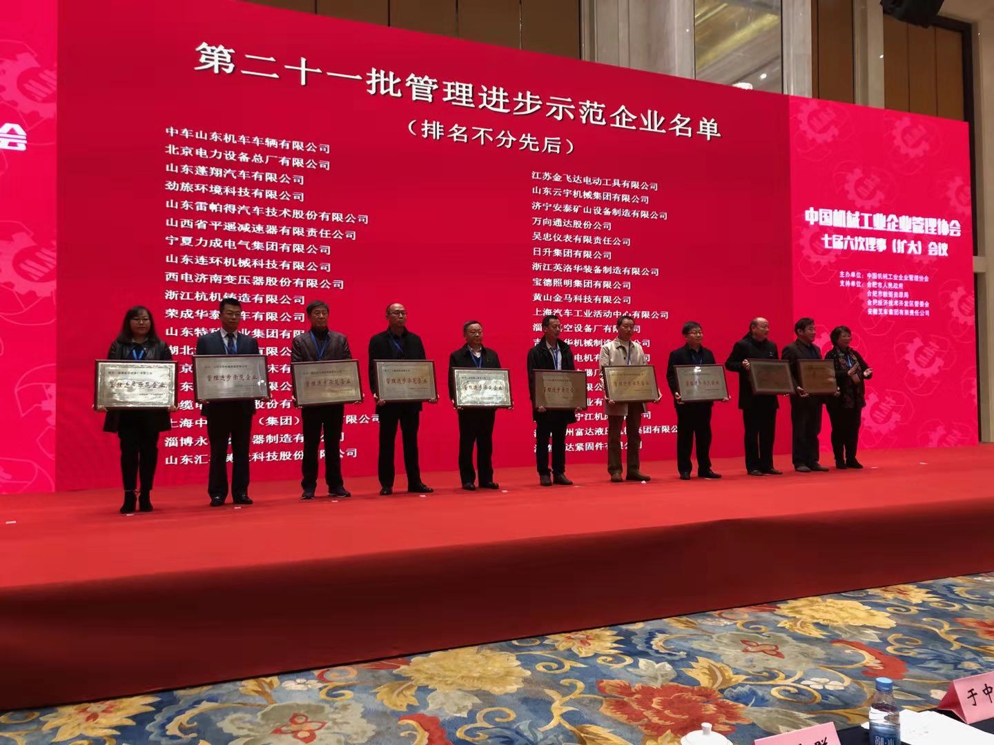 公司再次榮獲“中國機(jī)械工業(yè)管理進(jìn)步示范企業(yè)”稱號(hào)