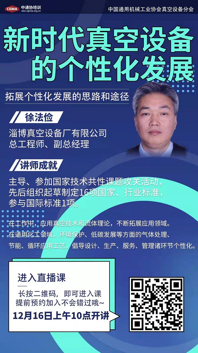 本次講座時(shí)間為:1216日上午10點(diǎn)整,專題為《新時(shí)代真空設(shè)備的個(gè)性化發(fā)展》,歡迎大家提前完成注冊(cè),準(zhǔn)時(shí)在線收聽,交流互動(dòng)。